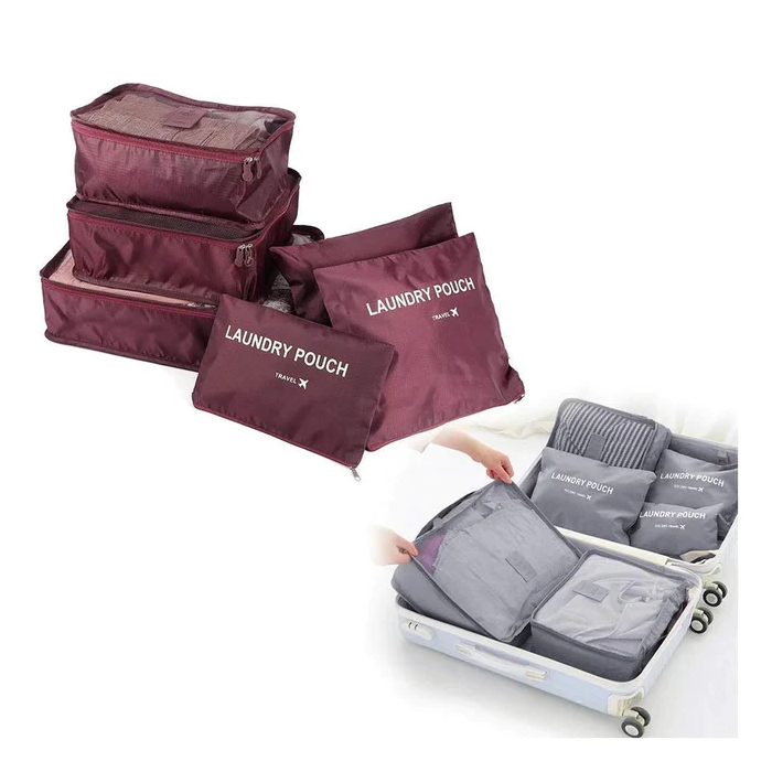 6 different size bag that can hold clothing, footwear, toothbrushes and more ,it has a lot of compartments,can keep clean.