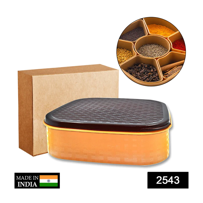 Multipurpose box made 100% food grade BPA free Virgin material is very useful to keep spices in fresh and proper way in single box. This storage box with air tight lid and 7 sections can be used for storing handy amount of all spices frequently used in kitchen. It is also very useful for various other household usages like for Rangoli powder, Medicines, Tailoring Items, etc.