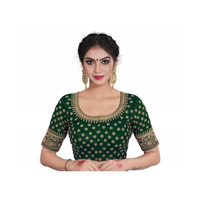 Princess Cut Blouse In Bottle Green With Embroidery