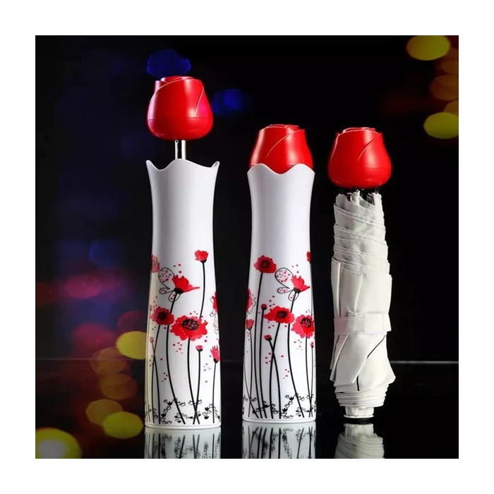 Lightweight Waterproof UV Protection Mini Folding Creative Rose Flower Case Canvas Plastic Umbrella with Compact Bottle