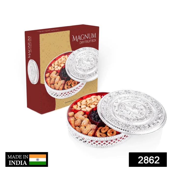 This box has Three Container with Tray where in you can easily arrange dry fruits, chocolate, mouth freshener, sweet and exclusive show piece for your drawing room which assures to get admired by your guests, It is a perfect gift for wedding, house warming, anniversary and festival occasions. You can impress your special guests with this gift, Multipurpose decorative box: dry-fruit box, chocolate box, mouth-freshener (Mukhwas) box, sweet box (Mithai), shagun box (Gift), marriage gift box, pan box, dessert box