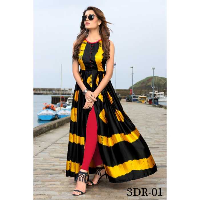 Round Neck Front Slit Kurti In Japan Satin With Digital Print