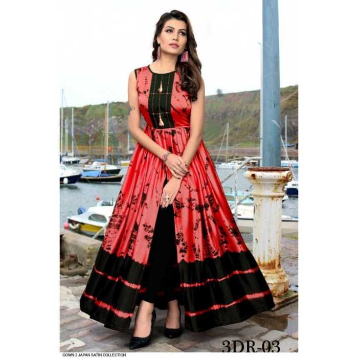Round Neck Front Slit Kurti In Japan Satin With Digital Print