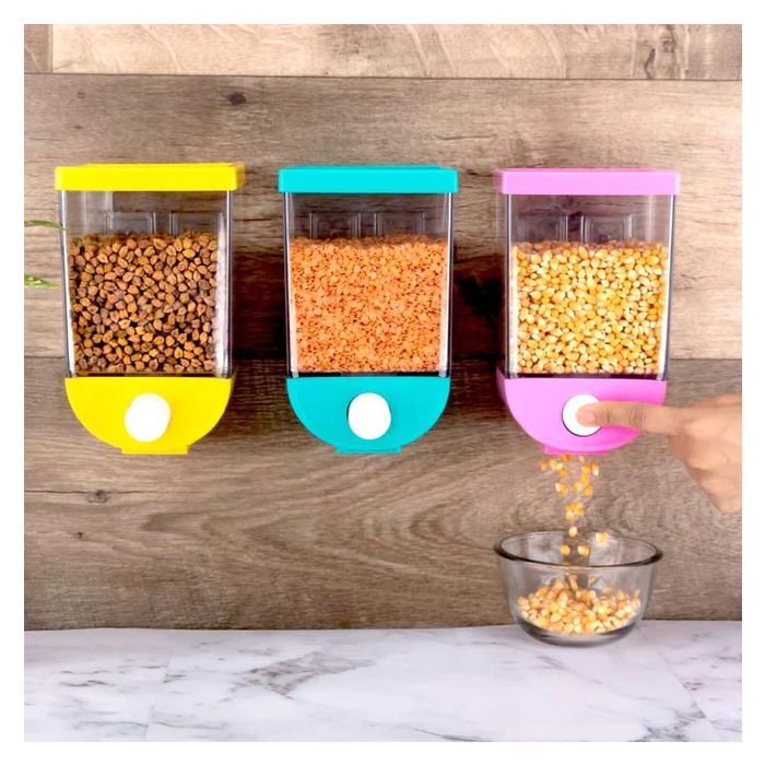 Wall Mounted Cornflakes/Cereal/Pulses/Beans/Oatmeal/Candy/Namkeen/Dry Food Storage Box/Tank - 1100 ml (assorted color)